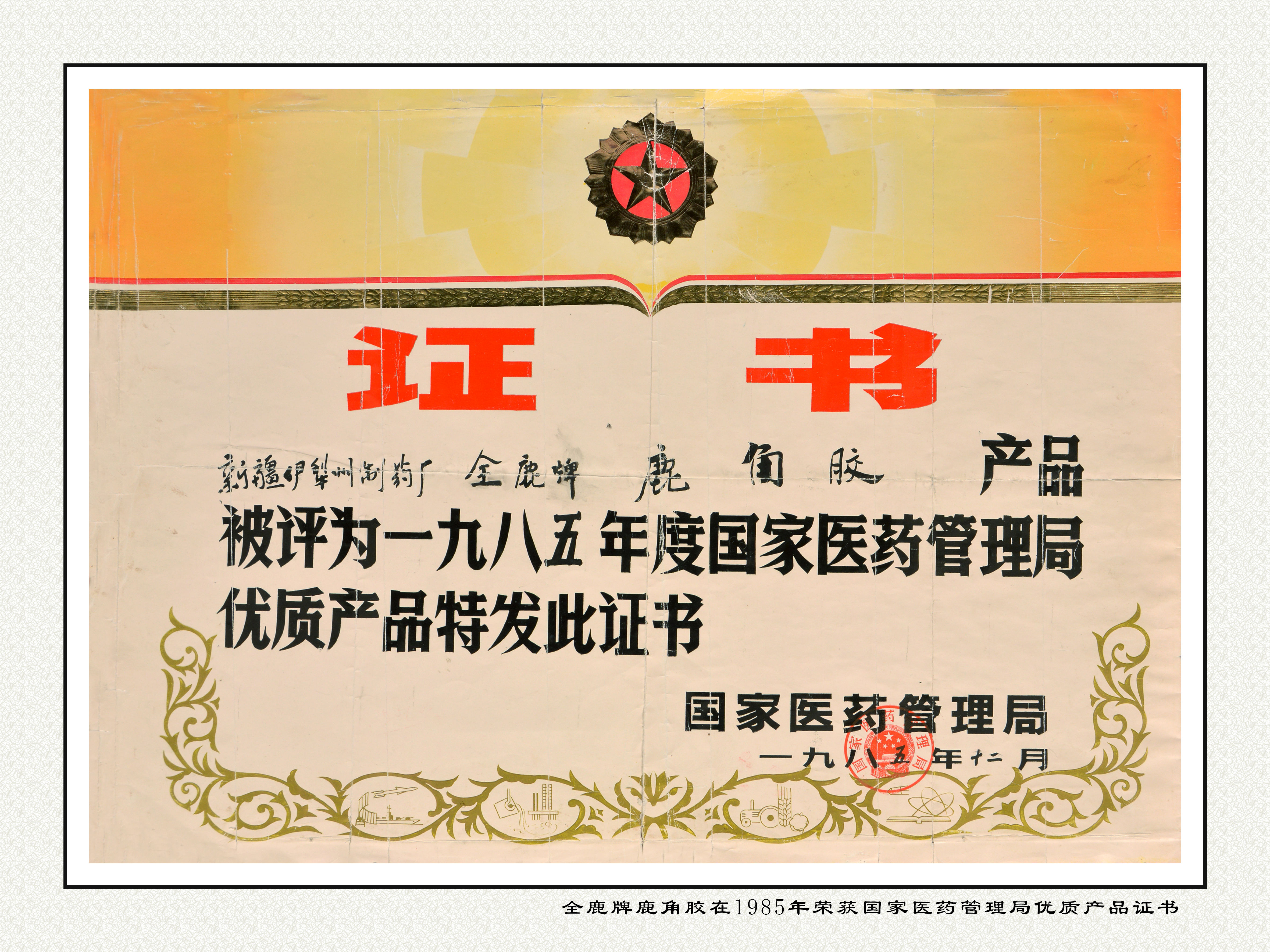 全鹿鹿角膠優(yōu)質(zhì)產(chǎn)品證書
